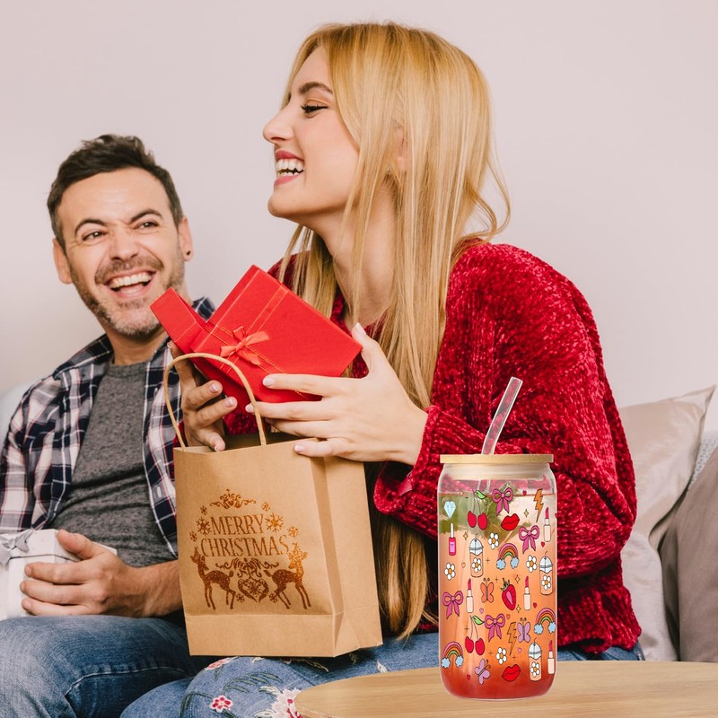 MRYAWXBK Cute Girly Bows Glass Cup with Bamboo Lids Straw 16oz, Aesthetic Ice Coffee Glass Tumbler for Soda Boba Tea Cocktail Birthday Gifts for Her Mom