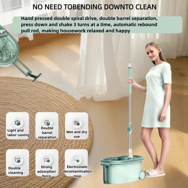 - 【Health-Friendly Cleaning】This innovative trapeador giratorio (spinning mop) system requires no touching of dirty water or bending over. Its one-touch operation makes it the best mop choice for the elderly, moms, and those with back pain—delivering a truly healthy clean without skin contact or strain. Designed as an ergonomic bucket and mop combo, this spinner mop uses an efficient mop spin mechanism in the wringer mop bucket to simplify hard floor care. Considered one of the best mops for floor cleaning, it ensures a hygienic, effortless experience every time.