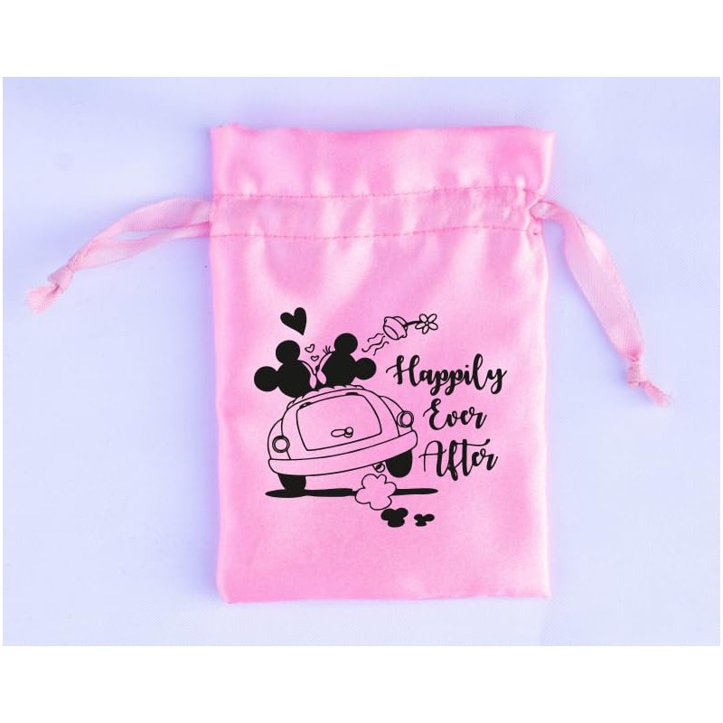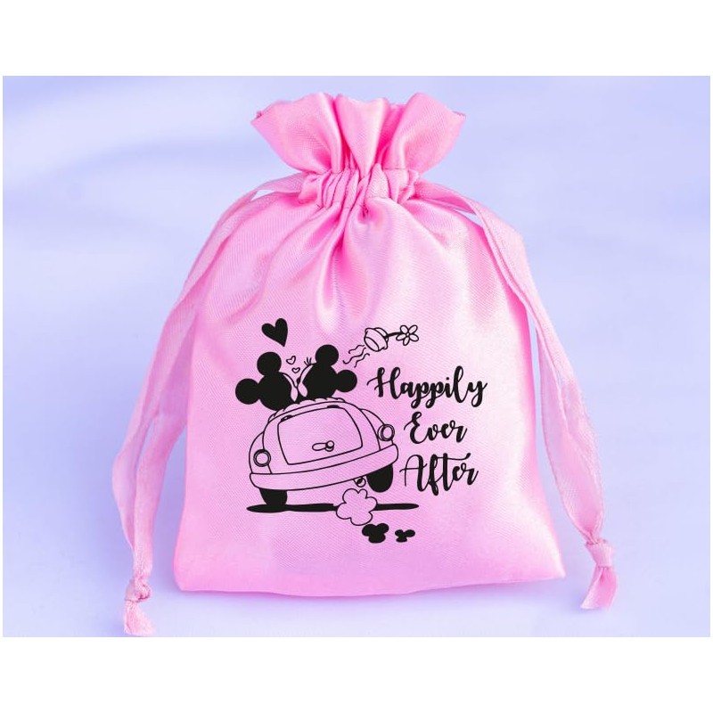 MS Happily Ever After printed Party Favor bags - Drawstring closure - Bachelorette hangover kit bags - Hangover Recover Kit Wedding Party Gift Bags - 5 * 7 Inch bags Set of 10 Satin