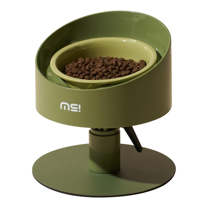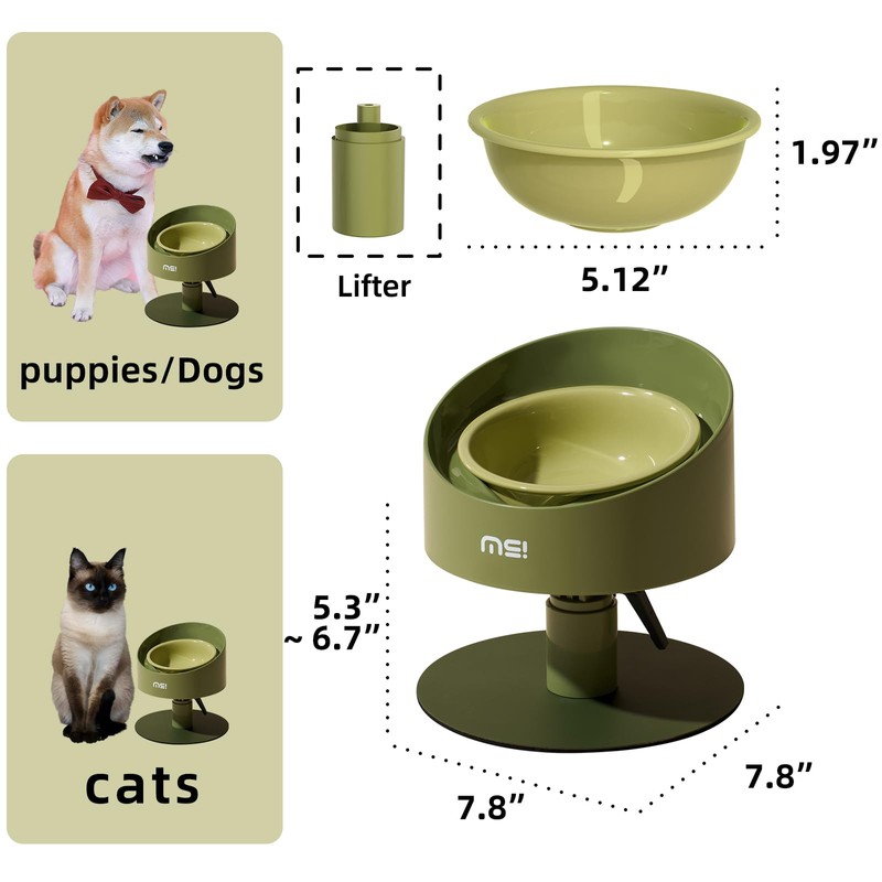 MS!MAKESURE Elevated Pet Bowl for Cats & Puppy, 8oz Spill Proof Modern Ceramic Raised Dog Kitty Food and Water Feeder with Adjustable Stand, Adjustable Angle Anti Vomiting (Green)