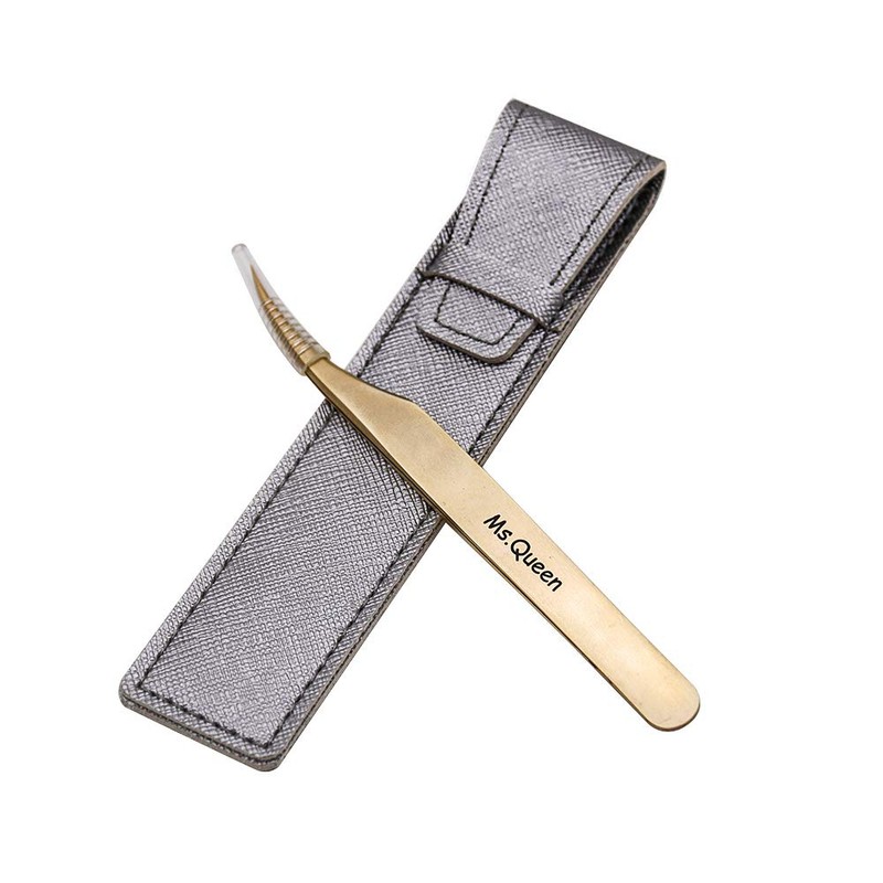 Ms.Queen Eyelash Extension Tweezers Set-Precision Tweezers for 2D-6D Volume&Individual False Lashes Extensions with PU Storage Case-Golden (Dolphin Tweezers/M003-3)