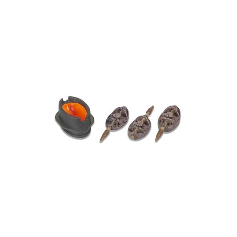 Saenger MS-Range Method Feeder Set Leadfree. Even when fishing, environmental awareness is becoming increasingly greater and the prohibitions for lead are constantly expanded. For this reason, we offer new method feeding baskets, which are completely lead free and are made of zinc material. Of course, there is also the matching shape, which in the set with three feeder baskets in various weight classes. The feeder baskets are equipped with a quick-change hanging system to ensure easy hanging of the leader and main cord. 100% lead-free quick change system set: 1 x 20, 1 x 30, 1 x 40 g + mould. Safety instructions: The item may only be used for the intended purpose. Keep all parts and especially the packaging material away from children and store in a safe place or dispose of them properly. This item is not a toy, keep away from children and pets. Do not use if there are signs of defects.