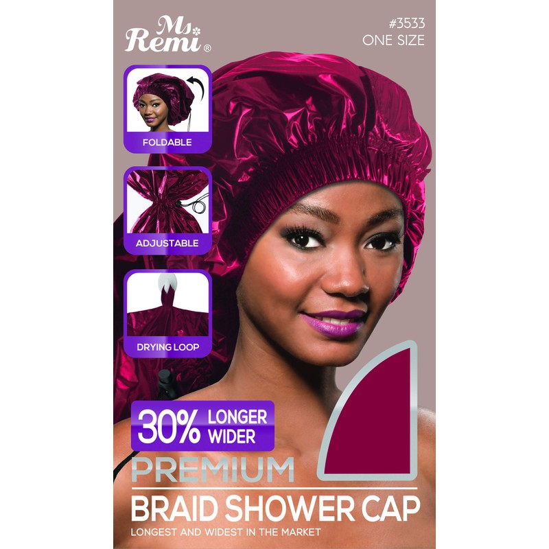 Ms Remi Premium Braid Shower Cap Burgundy 25 inch long and 18.5 inch wide