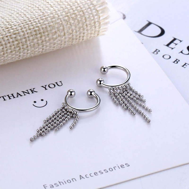 This small tassel earring clip can be worn on the ear lobe or ear bone according to your own habits. The shape of the tassel is simple and fashionable, which is very interesting.