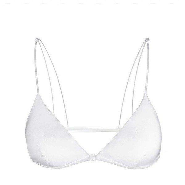 MsAnya Bralette for Women Girls Teens Triangle V Neck Bra A-B Cups Strappy Removable Training Bra Padded Wire Free(White, 34AB)