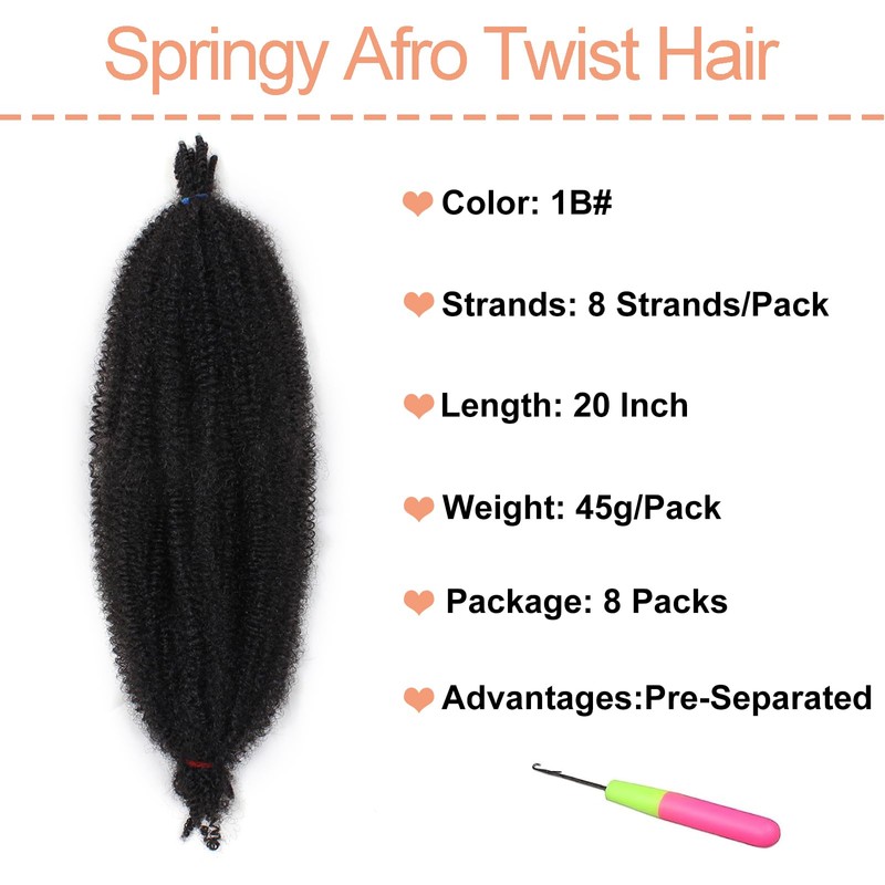 - Easy to Install:The afro twist hair is Pre~separated & Pre~Fluffed, It's very soft, Lightweight, Easy to install and style, Save your money and time, Perfect for customizing hairstyles.
