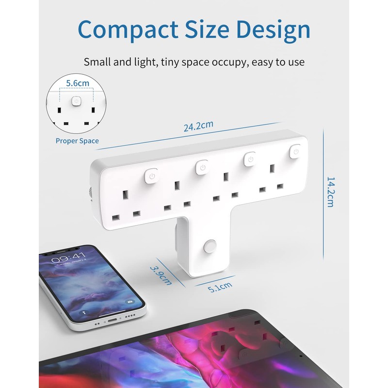 - 【Multi Plug Extension】This multi plug adaptor features 4 AC outlets & 4 independent switches with indicator lights, ideal for using indoors, without bulky extension leads. The multiple socket adapter which can use 4 devices simultaneously meets your daily needs. Max capacity up to 3250W(250V/13A).