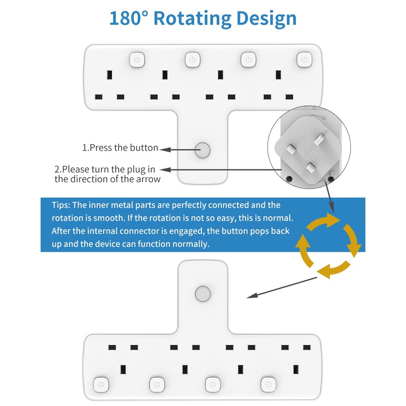 - 【180° Rotating Plug Design】T-type Plug Adapter & 丄-type Plug Adapter, 2 In 1. According to different needs, the plug adapter can be installed up or down. It has a wider range of application scenarios than the general T plug extension.