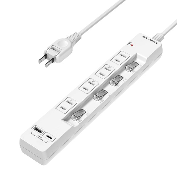 電源タップ usb 延長コード 1m 4個AC差込口 1個USB-Aポート 1個USB-Cポート エムサイン Mscien たこあしコンセント 雷ガード usb コンセント 個別スイッチ付き 壁掛け ほこりを防ぐ 節電 テーブル マルチタップ ほこりを防ぐ 節電 ホワイト タコ足配線 分岐 蛸足コンセント oaタップ スイッチ付き(1M)