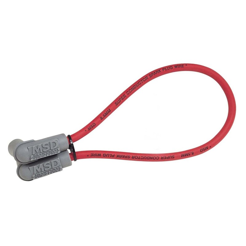 Coil wire for use with blaster coils and socket style cap. A power tower is also supplied to adapt a socket style cap. The MSD universal coil wire replacement is 18 In. long, made with our red Super Conductor wire. The MSD 8.5mm Super Conductor wire is the performance wire. Engineered from the inside out, the 8.5 offers everything you have ever wanted in a wire; incredibly low resistance without electronic interference. In a single 12 In. length of Super Conductor wire there is only 40 to 50 ohms of resistance. That is the lowest resistance of any helically wound wire.