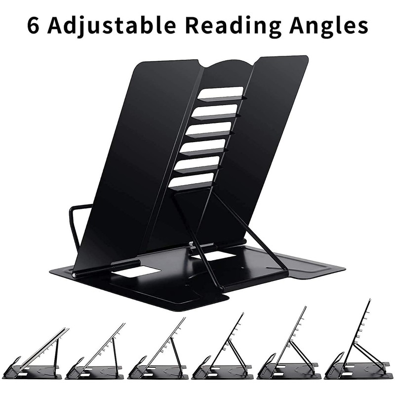 MSDADA 1PC Desk Book Stand Metal Reading Rest Book Holder Adjustable Cookbook Documents Holder Portable Sturdy Bookstands for Recipes Textbooks Tablet Music Books with Page Clips (Black)