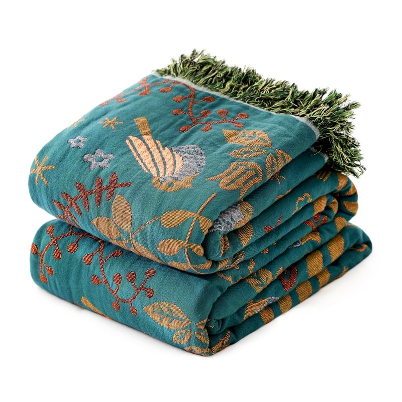MSGKV Boho Throw Blanket Cotton Blanket for Couch and Sofa Cover for Living Room Summer Throw Cozy Gauze Blanket 50" x 60"