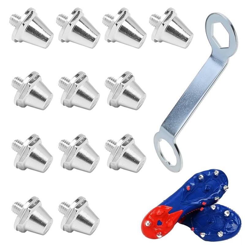 • Excellent adaptability: you will receive 4 x 13 mm bolts, 8 x 11 mm bolts and 1 x wrench. Specially designed to form a unit with football boots, these 12 high-quality aluminium spikes and screw studs with aluminium attachment not only offer seamless compatibility, 12 pieces screw studs for football boots replacement studs but also unbeatable durability on the playing field