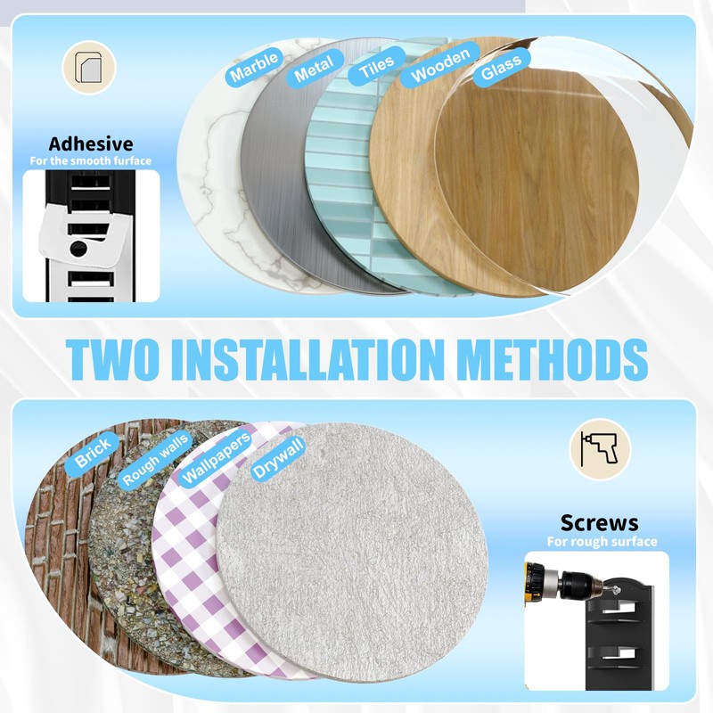 • Easy Installation with Enhanced Adhesion:Equipped with upgraded 3M adhesive, this hat hooks holder offers greater stability. Simply peel off the sticker, press it onto a clean, smooth surface without air bubbles, and let it sit for 12 hours before use. For rough surfaces like painted walls, cement, or wood, screws are included for secure installation.