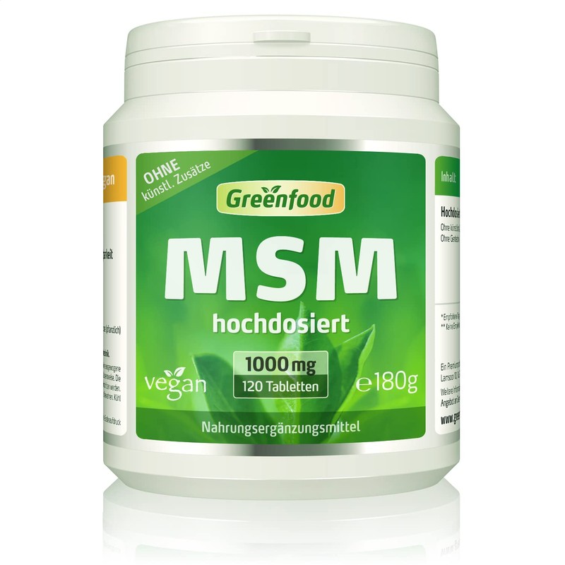 MSM, 1000 mg, Tablets, Hochdosiert – Greenfield – No Artificial Additives, Vegan, , ,