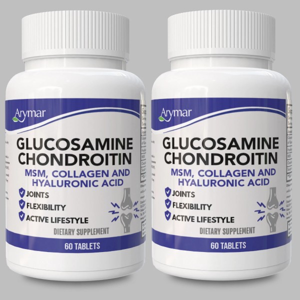 MSM Arymar Glucosamine, Chondroitin, MSM, Collagen & Hyaluronic Acid 60 tab (2-Pack)