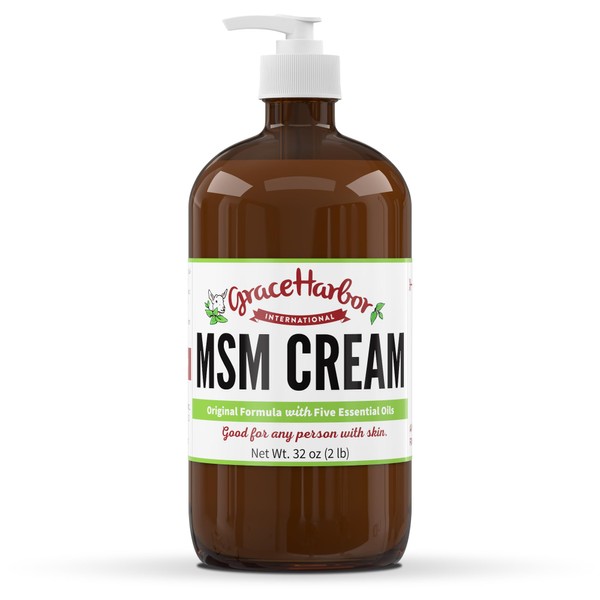 Grace Harbor MSM Cream – Original – Daily Skin, Muscle and Joint Rub with Goat Milk, Essential Oils & MSM – Neck, Back, Shoulder, Elbow, Knee, Hand and Foot Therapy – 32 oz