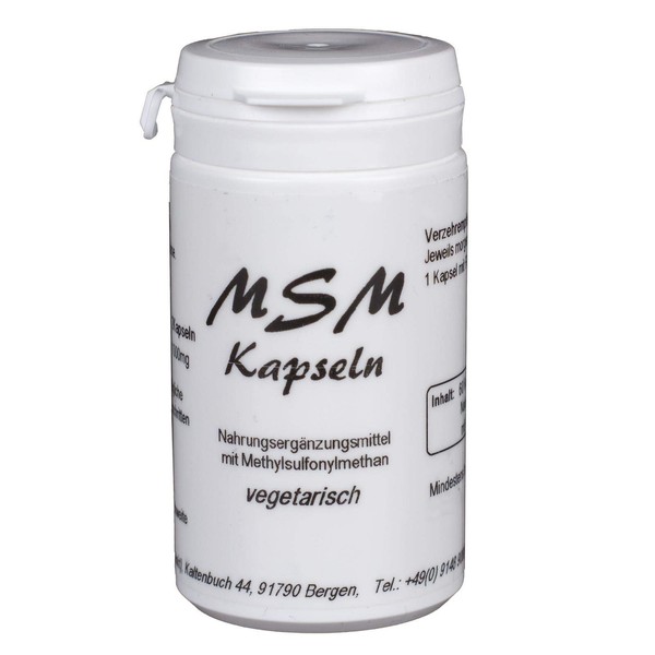 - Inhalt: 60 Kapseln á 600 mg = 36 g Nahrungsergänzungsmittel mit Methylsulfonylmethan.