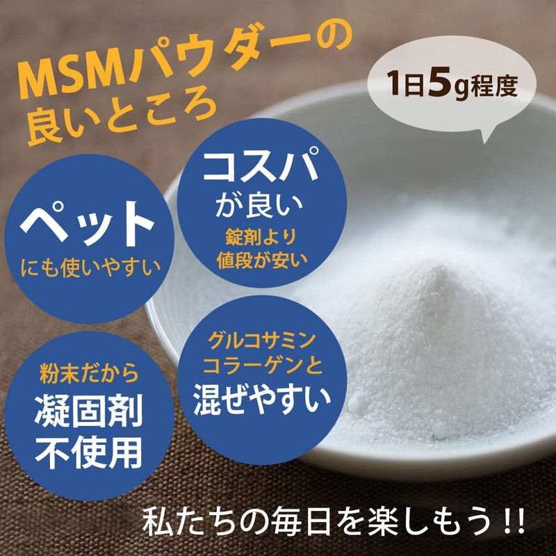 - Ingredients: Methyl salfonylmethane (MSM), silicon dioxide
