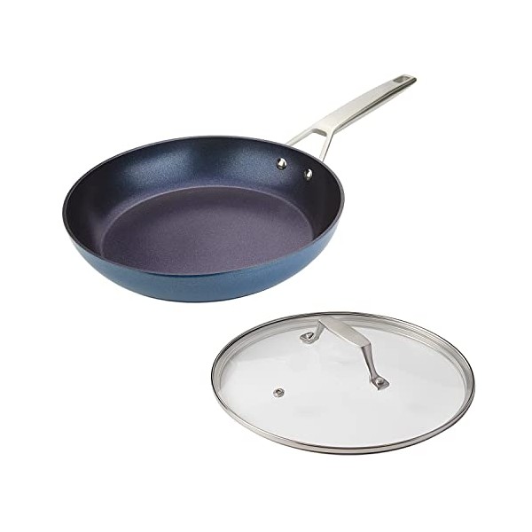 MSMK 10 inch Nonstick Frying Pan with Lid, Burnt also Non stick, Induction, Scratch-resistant, Omelette Pan Blue