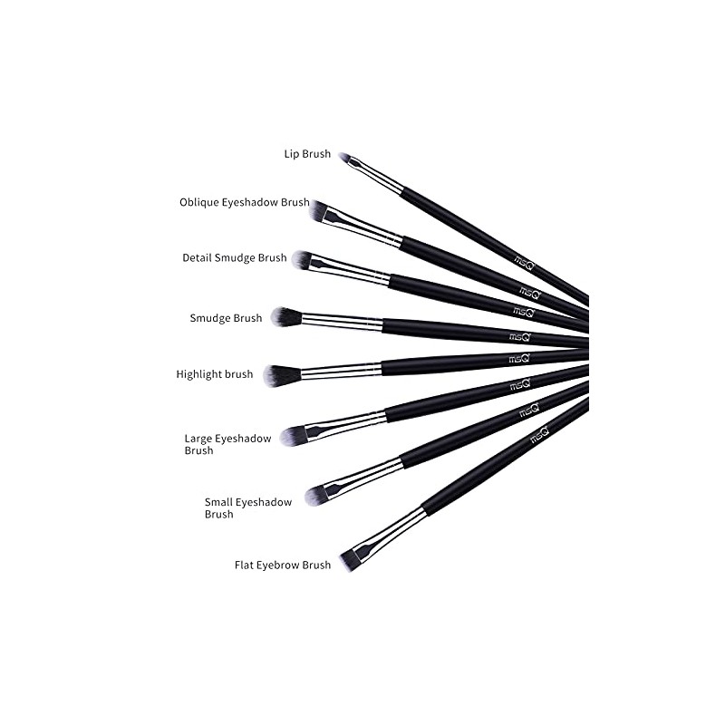 MSQ Eye Makeup Brushes 8pcs Eyeshadow Makeup Brushes Set with Soft Synthetic Hairs & Real Longer Wood Handle for Eyeshadow, Eyeliner, Blending, Lip(Black)