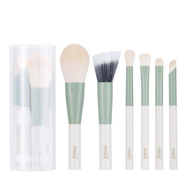 MSQ Makeup Brushes Set of 6 Makeup Brushes, Eye Shadow Brushes, Face Brushes, Makeup Brushes, Super Soft, Easy to Store Mini Makeup Tools (Green)