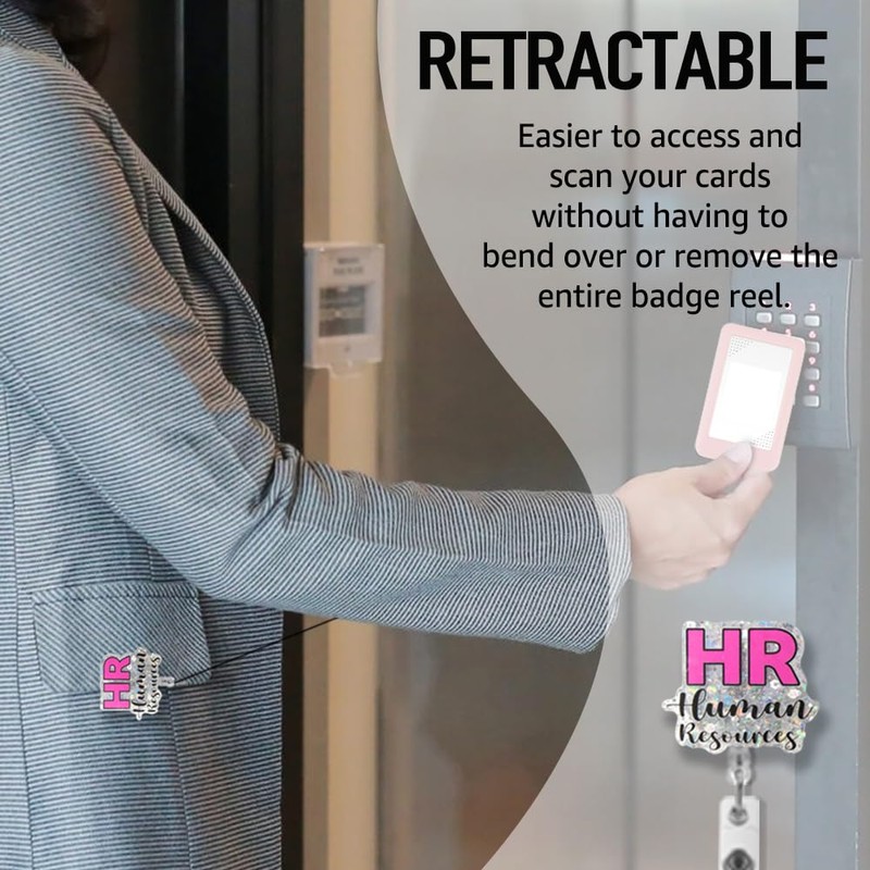 Msticey HR Human Resources Glitter Retractable Badge Holder, Funny ID Card Badge Reel Gifts for HR Office Worker Coworker, Human Resource Gifts, Thank You Gifts for HR Manager, New Office Gifts