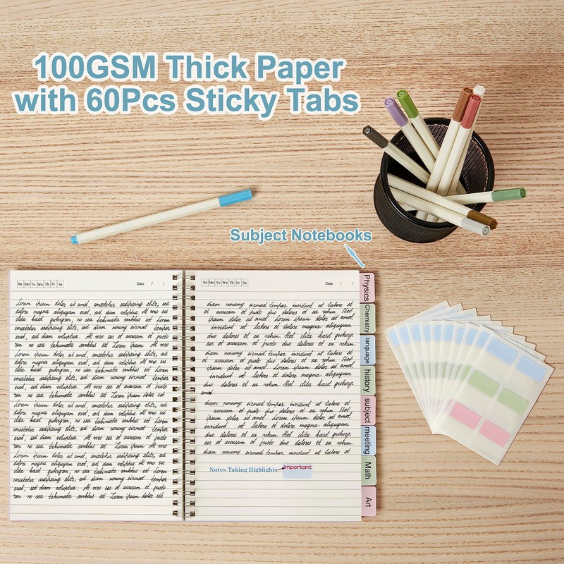 - 【Double Spiral Design】 Duing to the flexible double spiral binding design, you can easily flip the papers, lay it flat or wrap it back for working on just one side. You can also tie the detachable elastic trape on the binding if you don't want to use it. The spiral binding is also avaiable for holding a small pen on this a5 journal notebook.