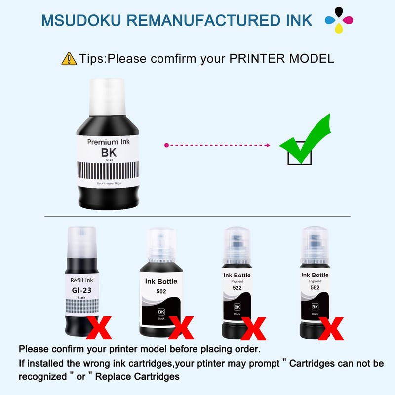 - Printer Compatibility: Msudoku GI26 GI-26 ink refill bottles replacement for Canon MAXIFY GX3020 GX4020 GX5020 GX6020 GX6021 GX7020 GX7020X GX7021 Printer