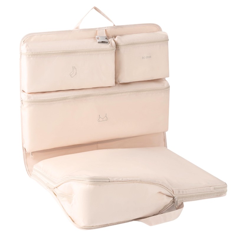 - 【衣類圧縮機能つき】小分けポケットだけでなく、ダブルチャック仕様の大容量な衣類圧縮ポーチが一体化していて、スッキリと収納できる♪