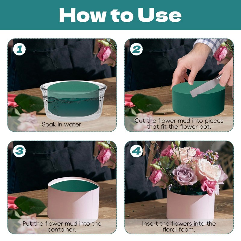 - Long-lasting fresh green: flower puree moss is made according to a special process that maintains the fresh green colour for a long time. Sponge for dried flowers. The pH value of Flower Puree is controlled so that it is best suited for use with fresh cut flowers, which reduces the likelihood of burning the roots and foam for flowers can maximise the life of the flowers