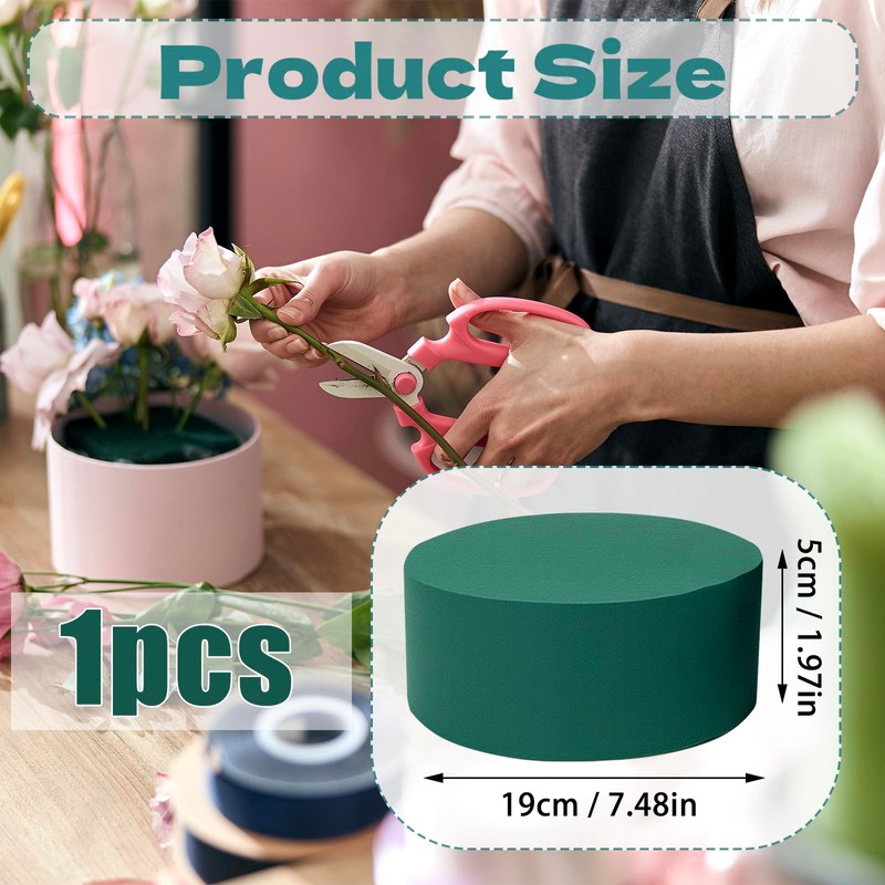 - Firm hold: foam for fresh flowers are round premium flower foam blocks, 1 piece per pack with a size of approx. 19 x 5 cm with a compact and highly breathable texture floral foam round improves water absorption and holds the flowers firmly in place at any angle, so flower sponge that a firm and safe arrangement is possible regardless of the size of the stems