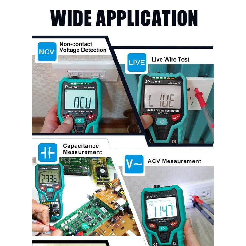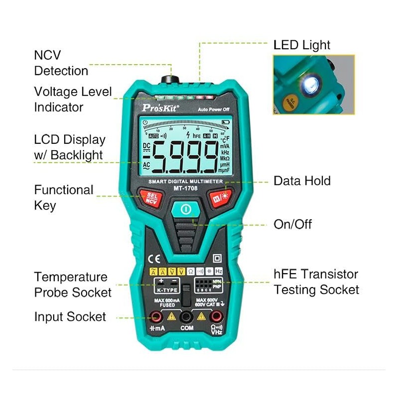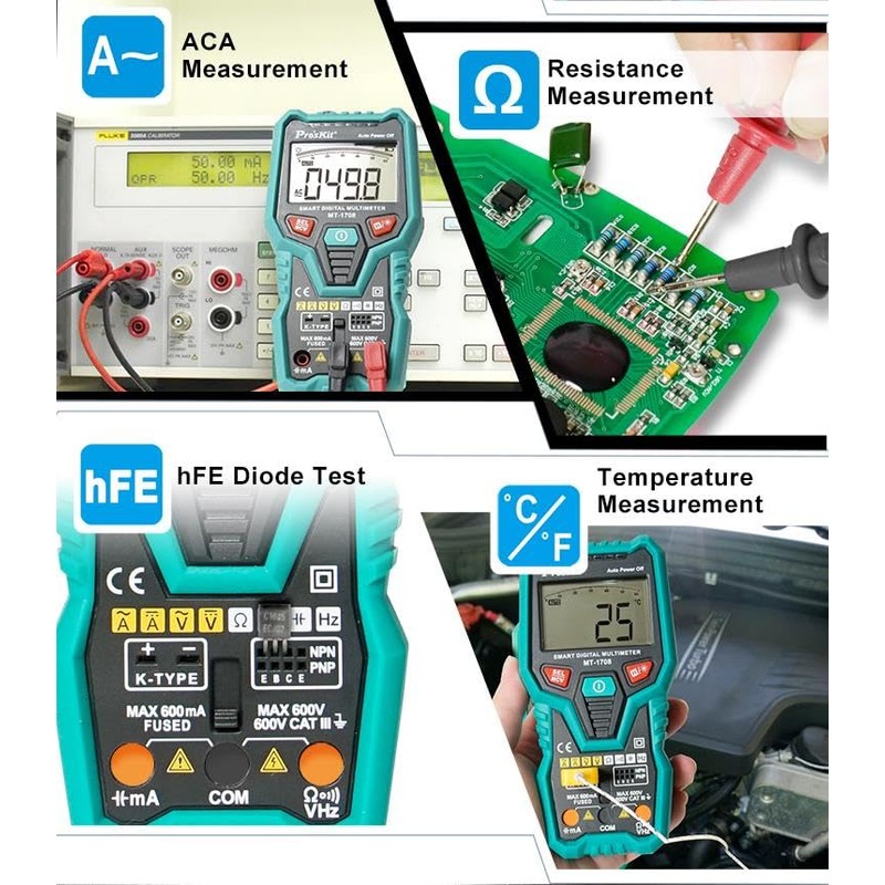 - Measuring DCV/ACV/DCA/ACA/resistance,capacitance/Hz duty cycle/temperature/live wire test and diode