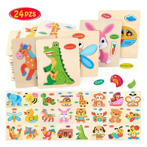 24 puzles de madera para niños pequeños: Estilos variados.