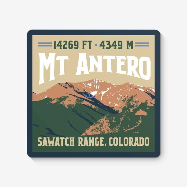 This vinyl sticker features Mt. Antero, a Colorado 14er located in the Sawatch range of the Rocky Mountains.