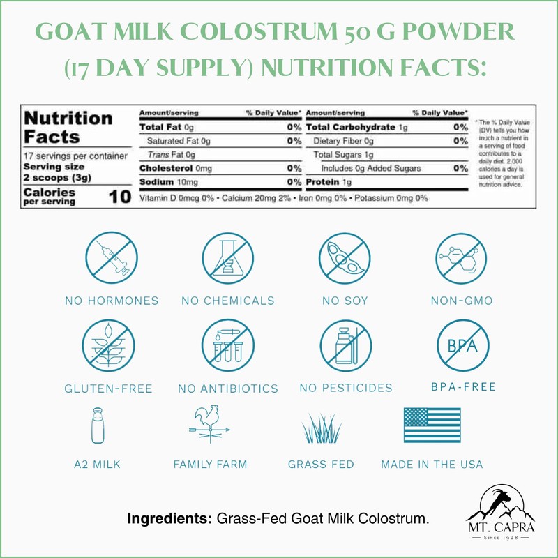 Mt. Capra Goat Milk Colostrum | for Healthy Immune System, Gut, and Athletic Performance | Grass-Fed, High in Immunoglobulins | 17 Servings - 50 Grams