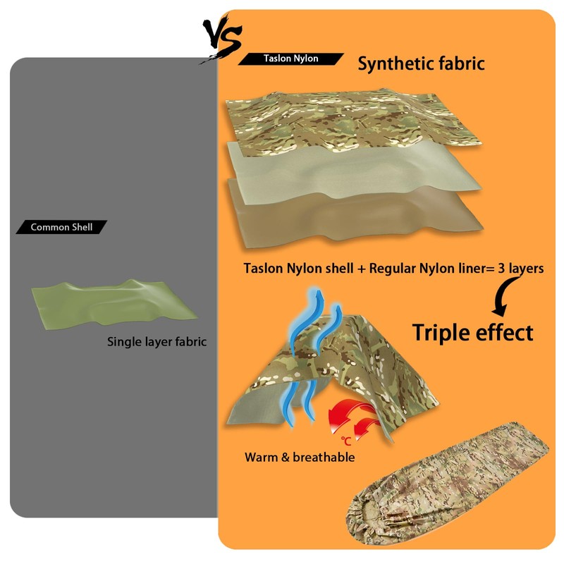 - Modular Compatibility for All Seasons – Use on its own in hot weather or pair with standard military or civilian sleeping bags for cold-weather missions.