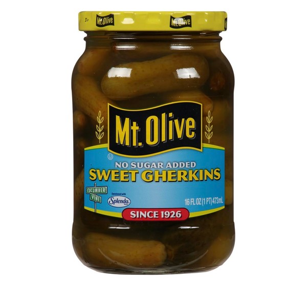 Mt. Olive Sweet Gherkins No Sugar Added 16 Oz (Pack of 2)