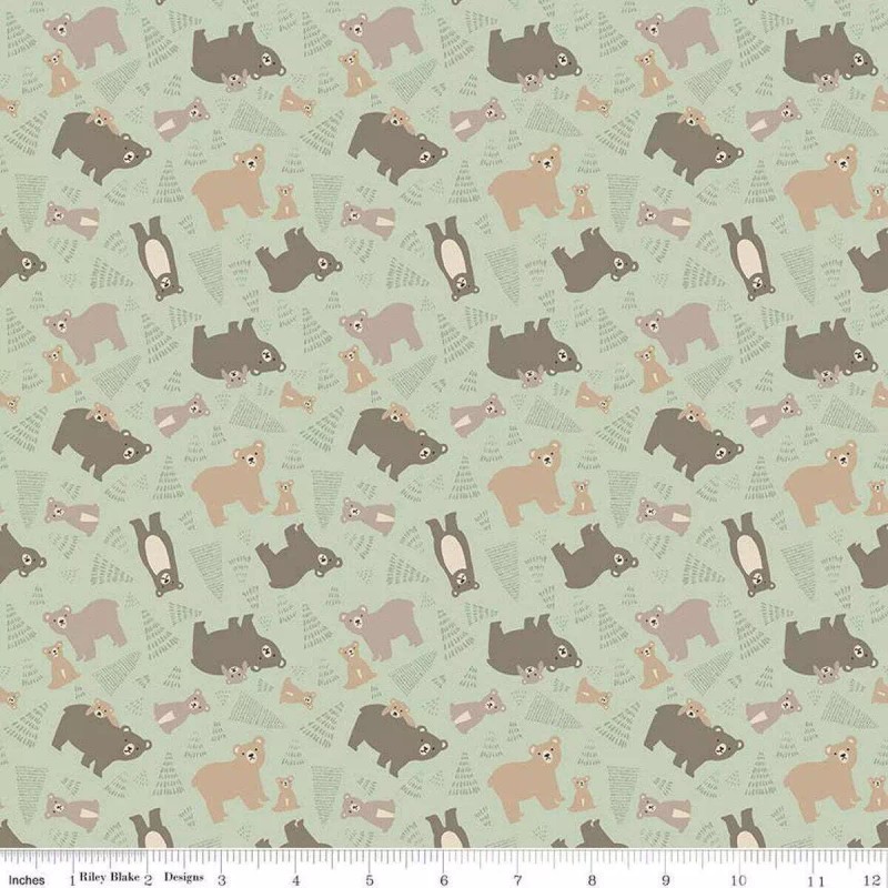 MT PEAK FABRIC Handmade Blanket, Burp Rag/ Security Blanket, and Bib Elmer & Eloise Bears Sage