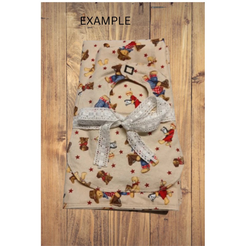 Handmade Blanket, Burp Rag/ Security Blanket, and Bib Up and Away Rockets