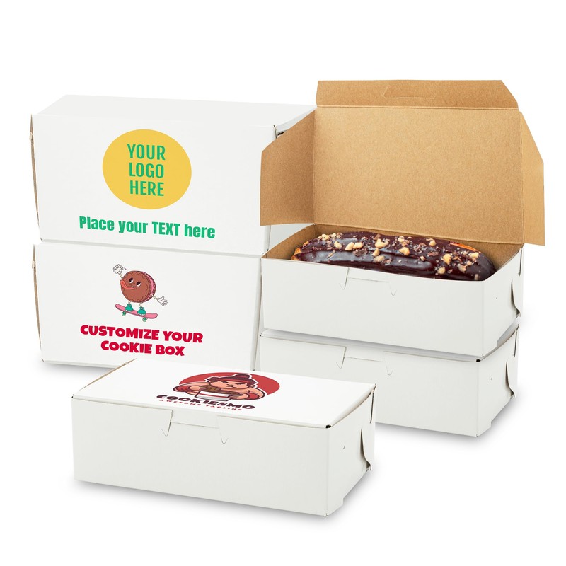 MT Products Custom White Eclair Bakery Boxes - 6.25" x 3.75" x 2.2" Customizable Printed Donut and Cupcake Boxes Printed (Pack of 5) - Made in the USA