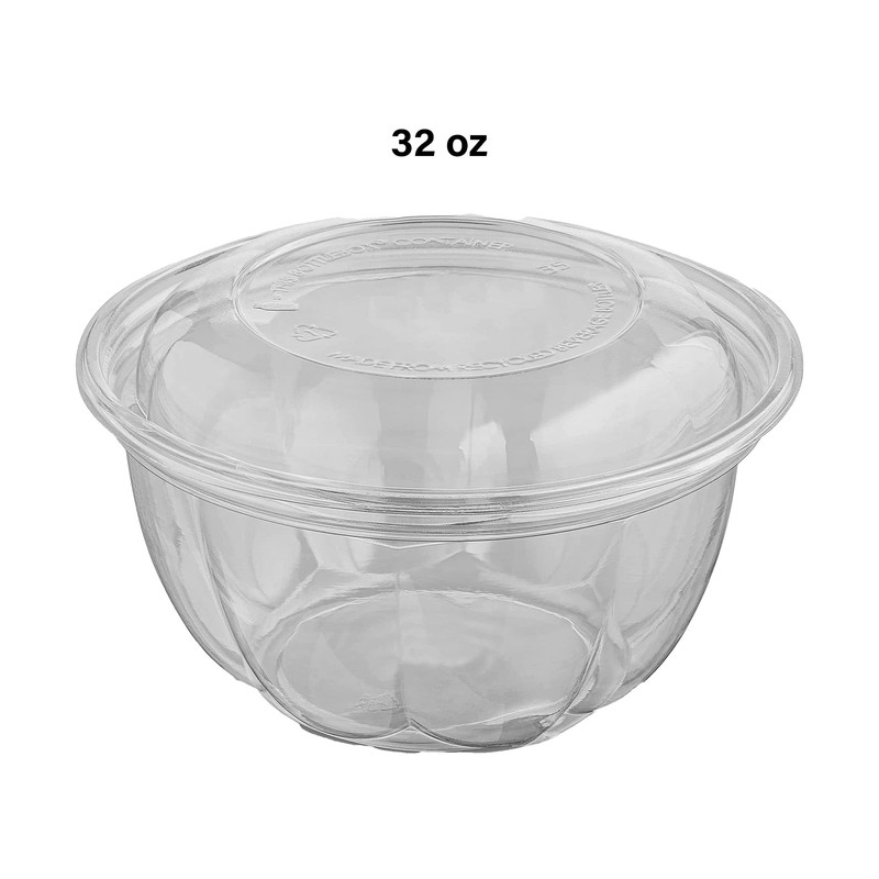 - Perfect container bowls with lids: These clear take out containers disposable salad bowls with lids are the perfect to go bowls with lids to pack a meal for when you are on-the-go. Salad container for lunch disposable with a size of 32oz, it's a perfect portion of vegetable and greens, poke bowl, or fruit salad to take for lunch or dinner.