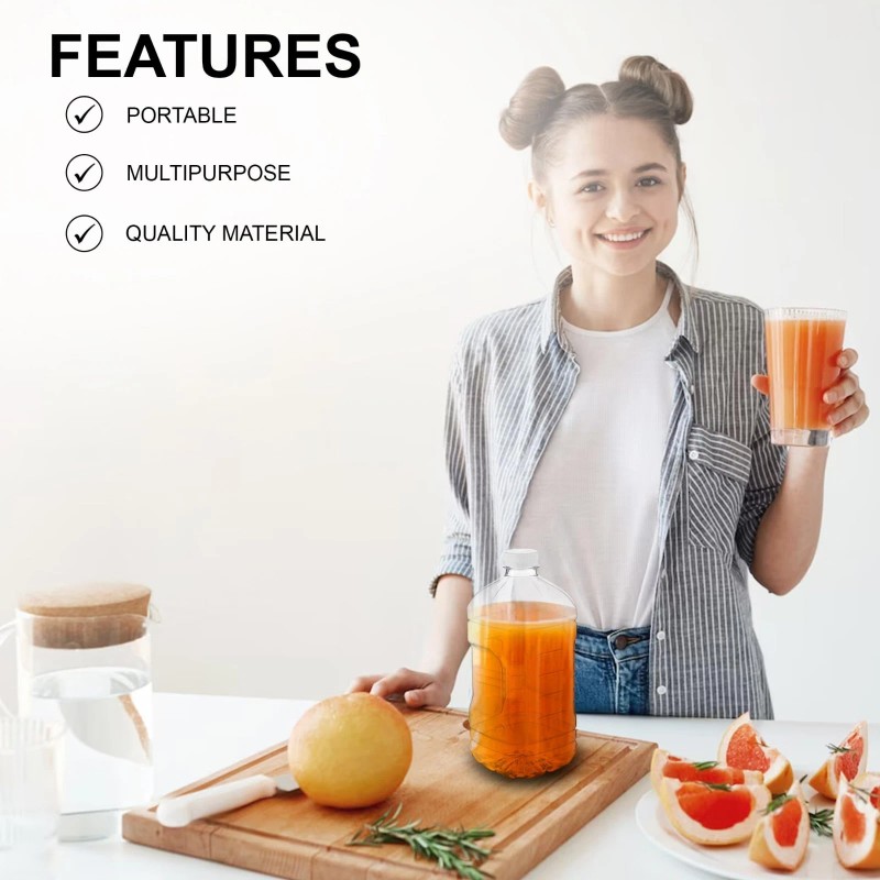 MT Products 64 oz. Empty Clear PET Plastic Juice Bottles for Juicer with Snap-on Twist Caps (Set of 2 bottles and caps) are the only apple juice container you will ever need for on-the-go. Plastic bottles with caps are just the appropriate size to fit inside a lunchbox, so we have the size you need no matter where you are. Each set comes with bottles that have convenient snap-on caps that do not come loose, so you won't have to worry about your drink leaking or dribbling. Since the outside is transparent and spotless, you may even personalize it with your name. These reusable bottles drink containers are leakproof BPA-free food-grade mini bottles that are also very simple to clean. The design assures the bottle do not topple over, and they are both sturdy and lightweight.