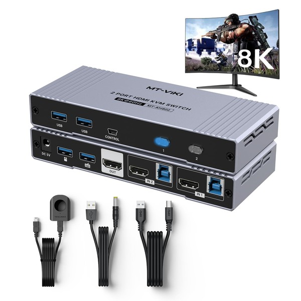 MT-VIKI 4K@144Hz USB 3.0 HDMI KVM Switch 2 Port 8K@60Hz, MT-VIKI Aluminum KVM Switch HDMI 2.1, 4K@120Hz HDR for Games
