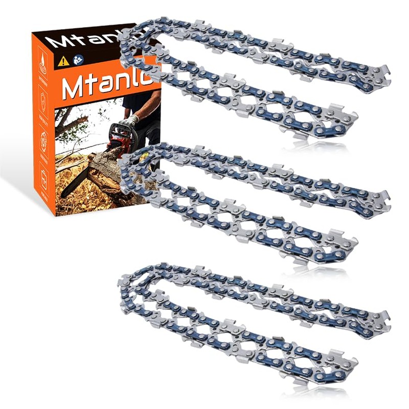 - Engineered for Precision and Safety – Each chain boasts professional-grade, heat-treated high-grade steel and advanced sharpening technology to maximize performance, longevity, and safety. With 3/8" low profile pitch and .043" gauge, combined with 45 drive links, this chain minimizes kickback while maintaining superior cutting efficiency for all your trimming, pruning, and woodworking tasks.