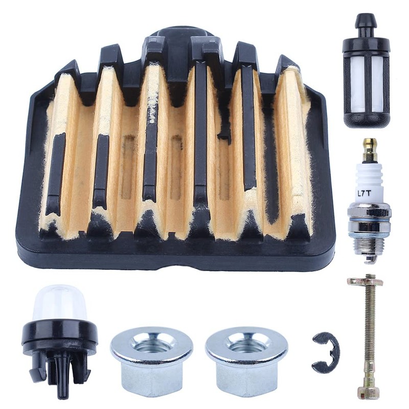 - [Package include]: 1 X Air Filter, 1 X Spark Plug, 1 X Fuel Filter, 1 X Chain Adjuster, 1 X Primer Bulb, 2 X Bar Nut.