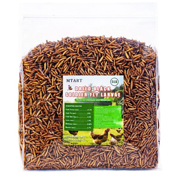 MTART 5LB Dried Black Soldier Fly Larvae Treat for Chicken, 100% Natural Non-GMO More Calcium Than Dried Mealworms High Protein Chicken Feed for Birds, Ducks, Layer Hens