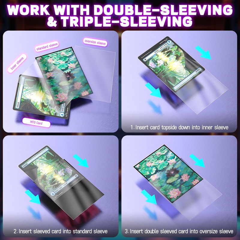- Compatible with Double & Triple Sleeving. You can use inner sleeves(63.5mm/64mm x 89mm) and oversize sleeves (69mm x 94mm) to create a double/triple protection.