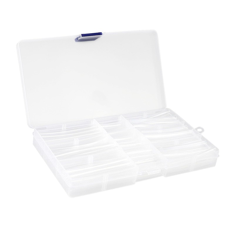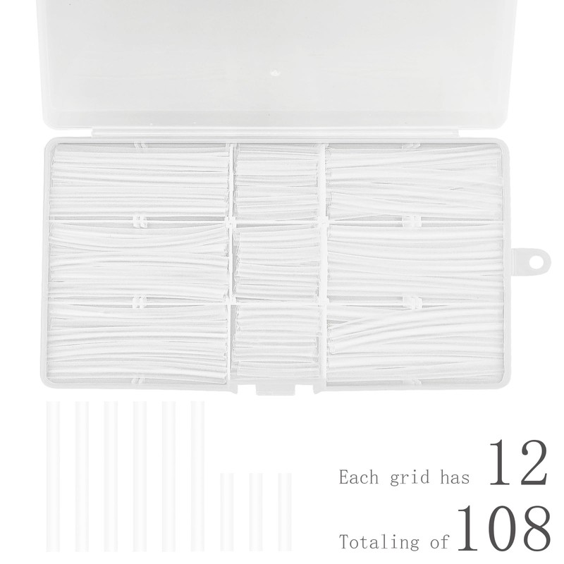 - [Comprehensive Kit]: Includes 108 pieces of heat shrink aglets in four styles: 7 colors (65mm & 30mm), all black (65mm & 30mm), all white (65mm & 30mm), and all transparent (65mm & 30mm). Each set comes with a convenient storage box for easy organization. Choose the color that best suits your style and needs.