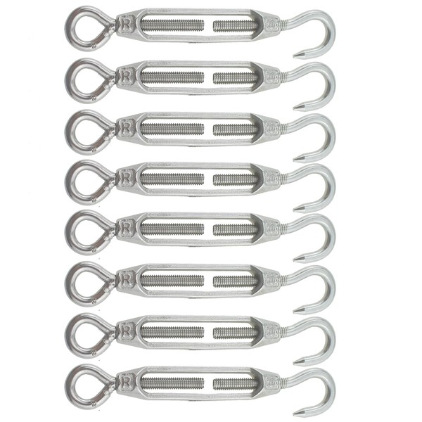 MTQY 8PCS M4 Swivel Screw Hook 3.3 to 5.7 Inch Length Stainless Steel Cable Tensioner Flower Basket Bolt Suitable for DIY String Light Picture Hanging